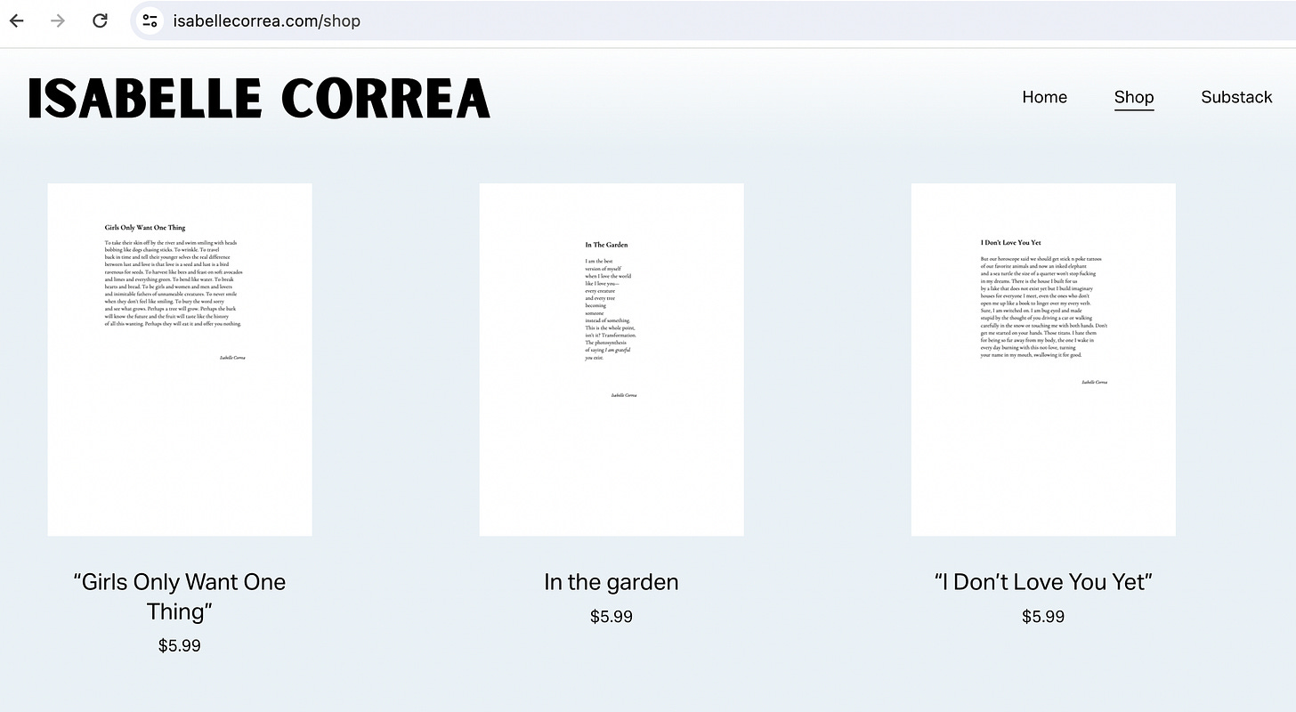 I have a new online shop where you can buy digital downloads of my poems, connect, and read my published work.